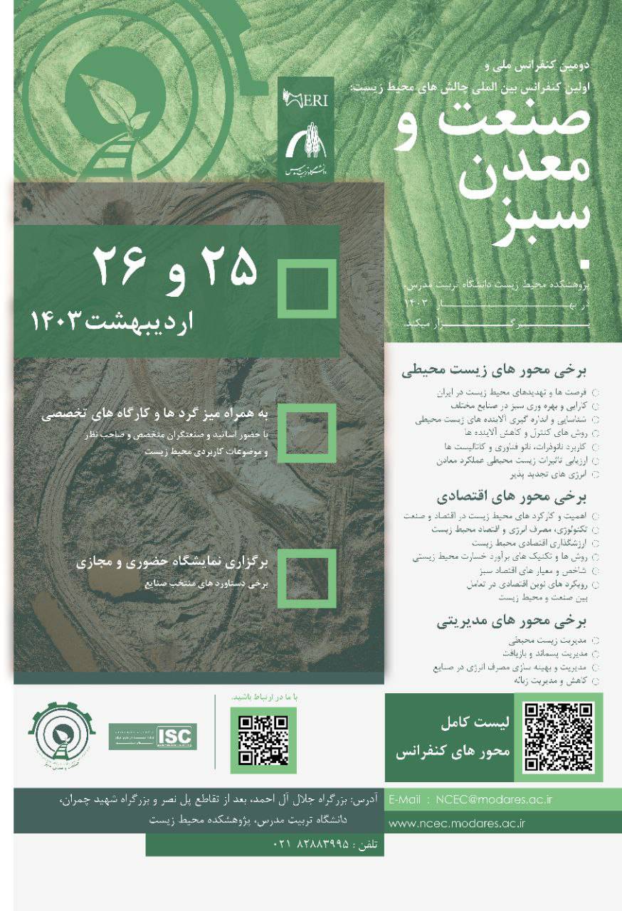 به گزارش دانشکده مهندسی آب، در راستای ایجاد بستری مناسب برای تبادل نظر و ارتقا سطح دانش به منظور ارائه راهکارهای مناسب برای پیشگیری از وقوع بحرانهای محیط زیستی و ترغیب به استفاده از فناوریهای سبز، دومین کنفرانس ملی و اولین کنفرانس بینالمللی چالشهای محیط زیست: صنعت و معدن سبز، طی روزهای 25 و 26 اردیبهشت ماه 1403 در دانشگاه تربیت مدرس برگزار میشود.