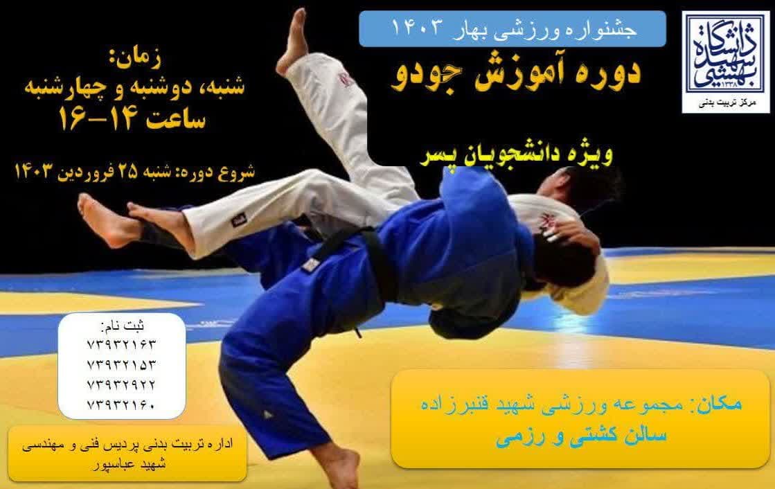 به گزارش اداره تربیت بدنی پردیس، دوره آموزشی جودو ویژه دانشجویان پسر، در سالن کشتی و رزمی مجموعه ورزشی شهید قنبرزاده برگزار می شود.