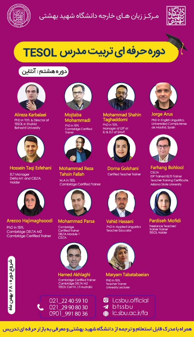 🔺 برگزاری هشتمین دوره حرفه ای تربیت مدرس TESOL به صورت آنلاین توسط دانشگاه شهیدبهشتی 🔻