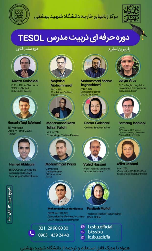 برگزاری دوره حرفه ای تربیت مدرسTESOL