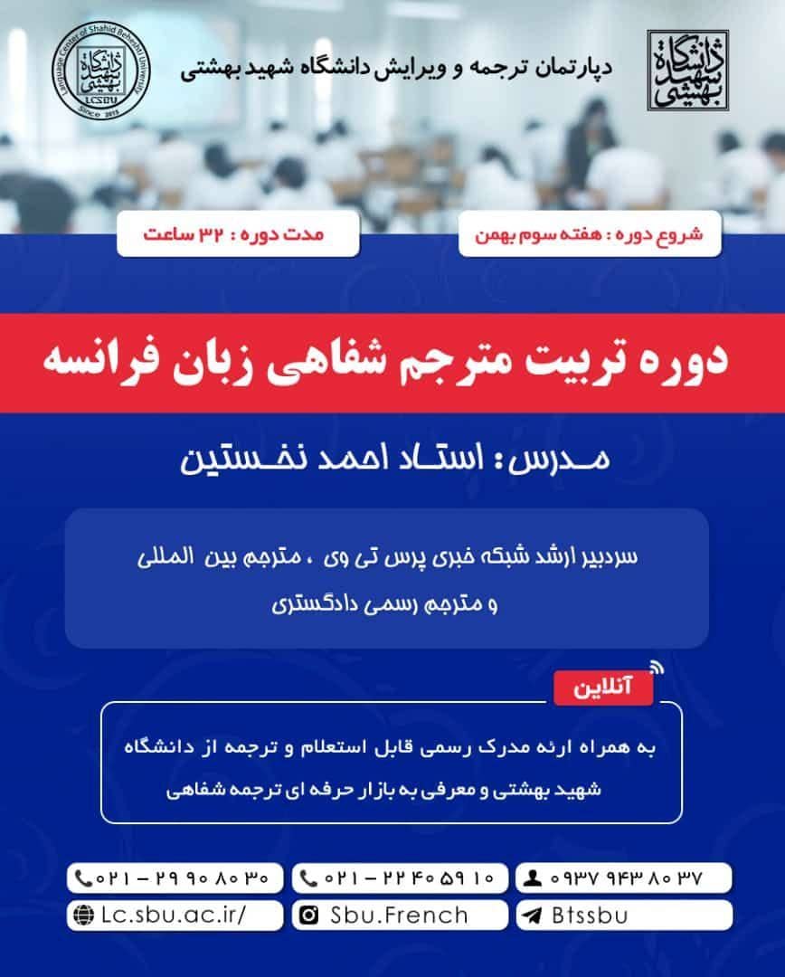 🔺سومین دوره کاربردی ترجمه شفاهی زبان فرانسه به صورت آنلاین توسط دانشگاه شهیدبهشتی