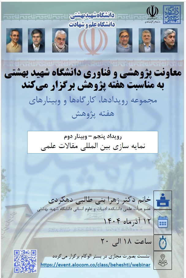 معاونت پژوهشی و فناوری دانشگاه شهید بهشتی به مناسبت هفته پژوهش در ادامه مجموعه رویدادها، کارگاهها و وبینارهای این هفته، وبینار...
