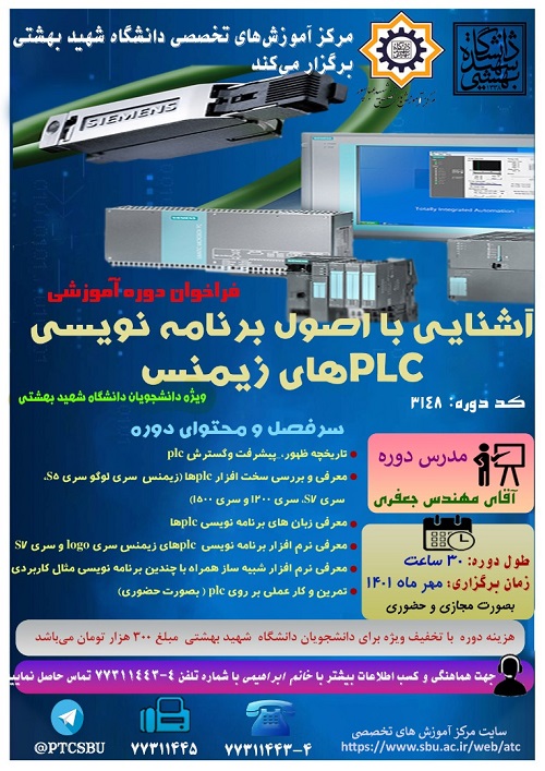 صفحه اصلی 🔺برگزاري دوره آموزشي اصول برنامه نویسی PLC های زیمنس🔻 6676 بازدید print share دوره آشنایی با «اصول برنامه نویسی PLC های زیمنس» از سوی مرکز آموزش های تخصصی دانشگاه شهید بهشتی برگزار می...