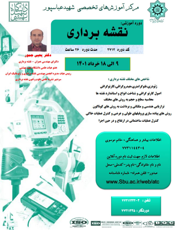 صفحه اصلی 🔺 فراخوان دوره های نقشه برداری 1401 🔻 5103 بازدید print share فراخوان دوره های نقشه برداری 1401 حضور برای عموم آزاد است تخفیف ویژه دوره برای دانشجویان دانشگاه شهید بهشتی نقشه برداری ...