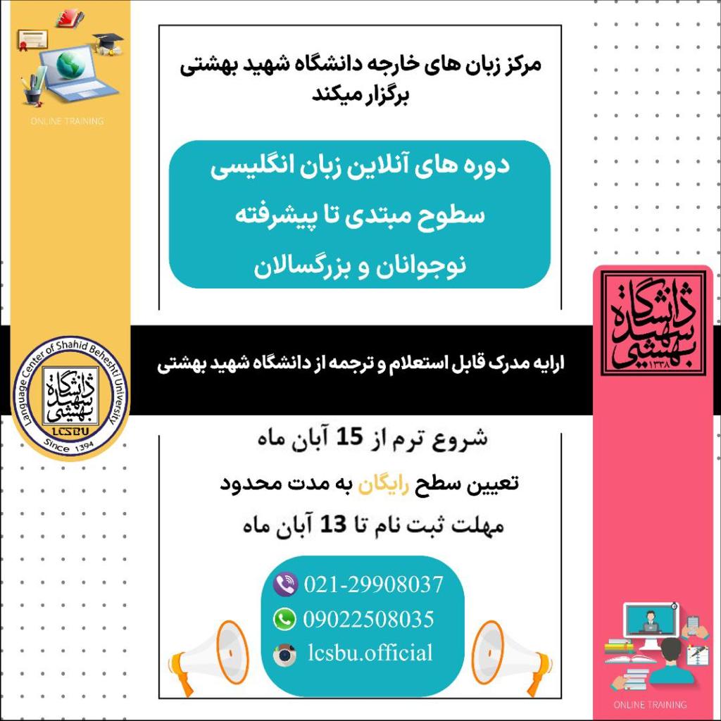 🔺 برگزاری دورههای ترمیک زبان انگليسي به صورت آنلاین توسط دانشگاه شهید بهشتی🔻