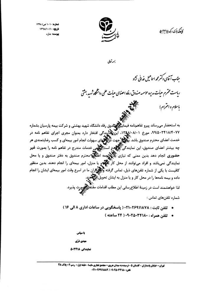 | 1 | آقای دکتر محمداسماعیل فدائینژاد | رئیس هیات مدیره صندوق | 22435230 و 22431842 |